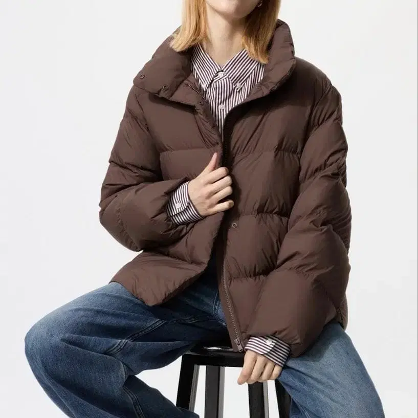UNIQLO 파우더 소프트 다운 자켓 브라운 S 사이즈