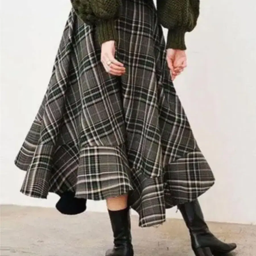 CLANE ASYMMETRY HEM CHECK SKIRT