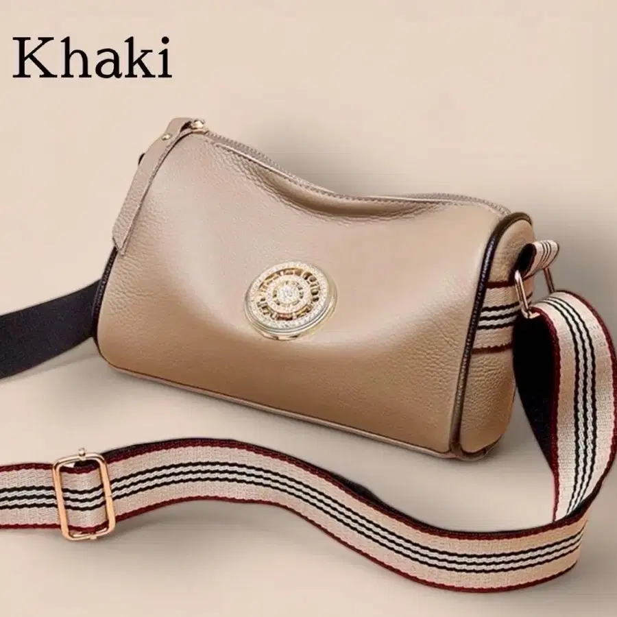 [새상품] 천연 가죽 숄더백 카키 브라운 고품질 사선 메기 숄더