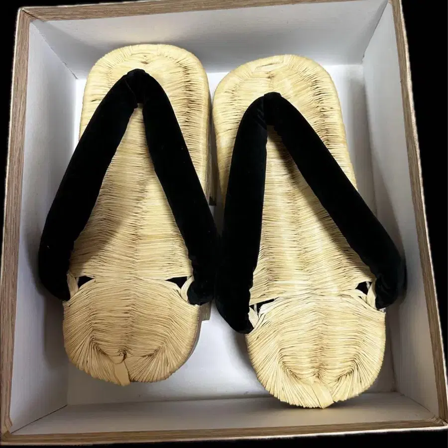 이 상품은, 대나무 껍질을 여러 겹 정성스럽게 엮어 만든 조리 바닥에, 견고한 나무 바닥, 그리고 블랙 벨벳 하나오를 맞춘, 극도로 정교한 일품입니다.