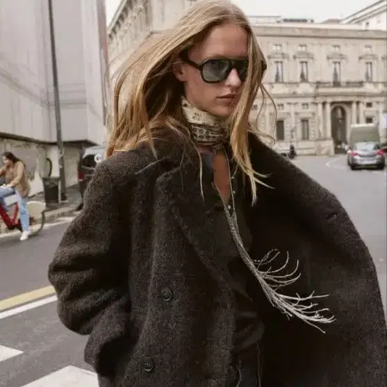 [ ZARA ] 부클레 더블 브레스트 미디 기장 코트