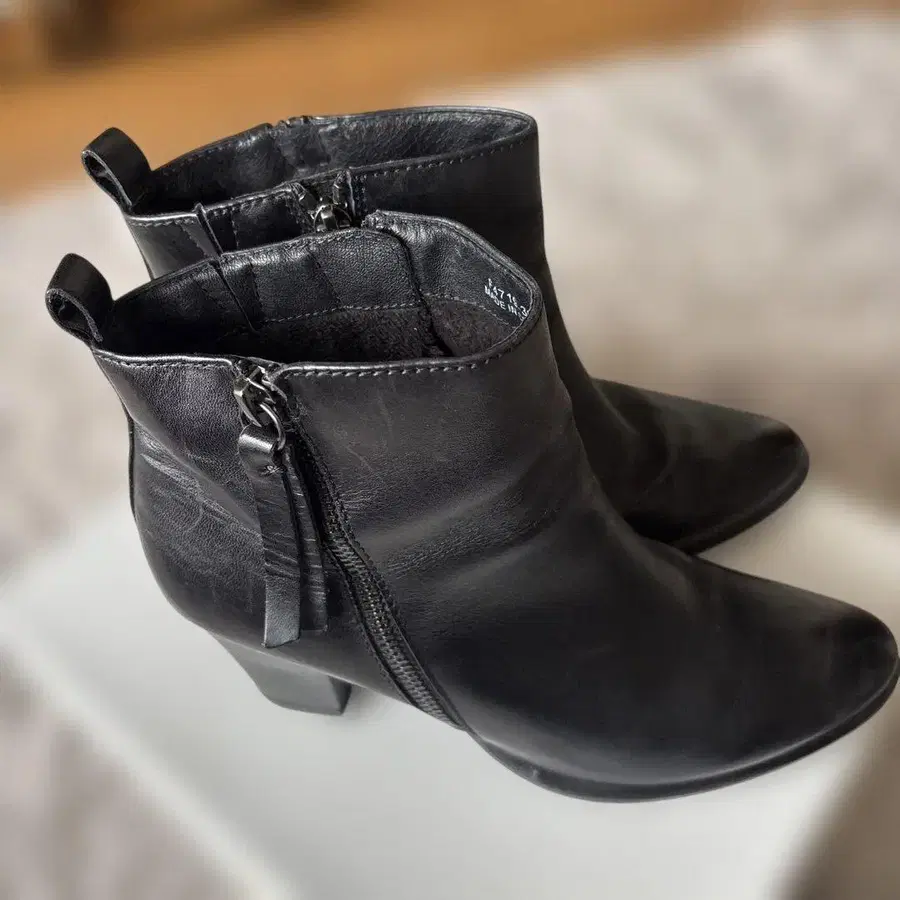 아카쿠라 블랙 가죽 중간 힐 부츠
