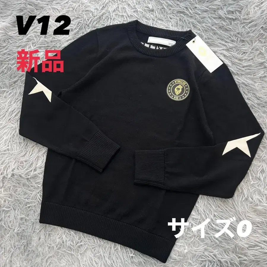 새상품 V12 니트 스웨터 울 모 블랙 별 패턴 사이즈 0