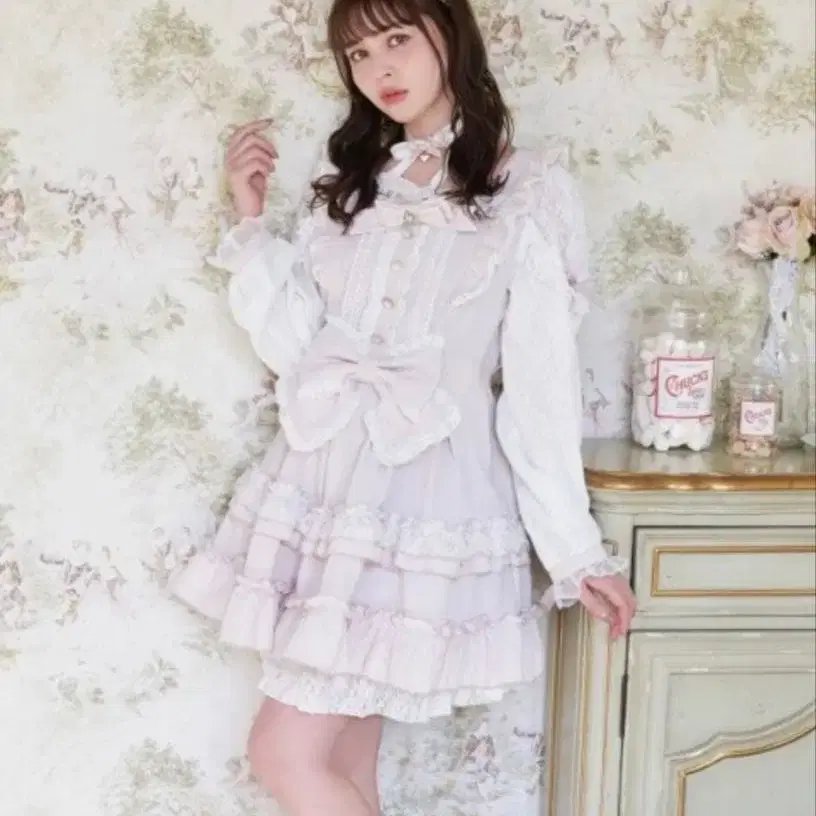 리즈리사 티아라 리본 티어드 원피스 핑크