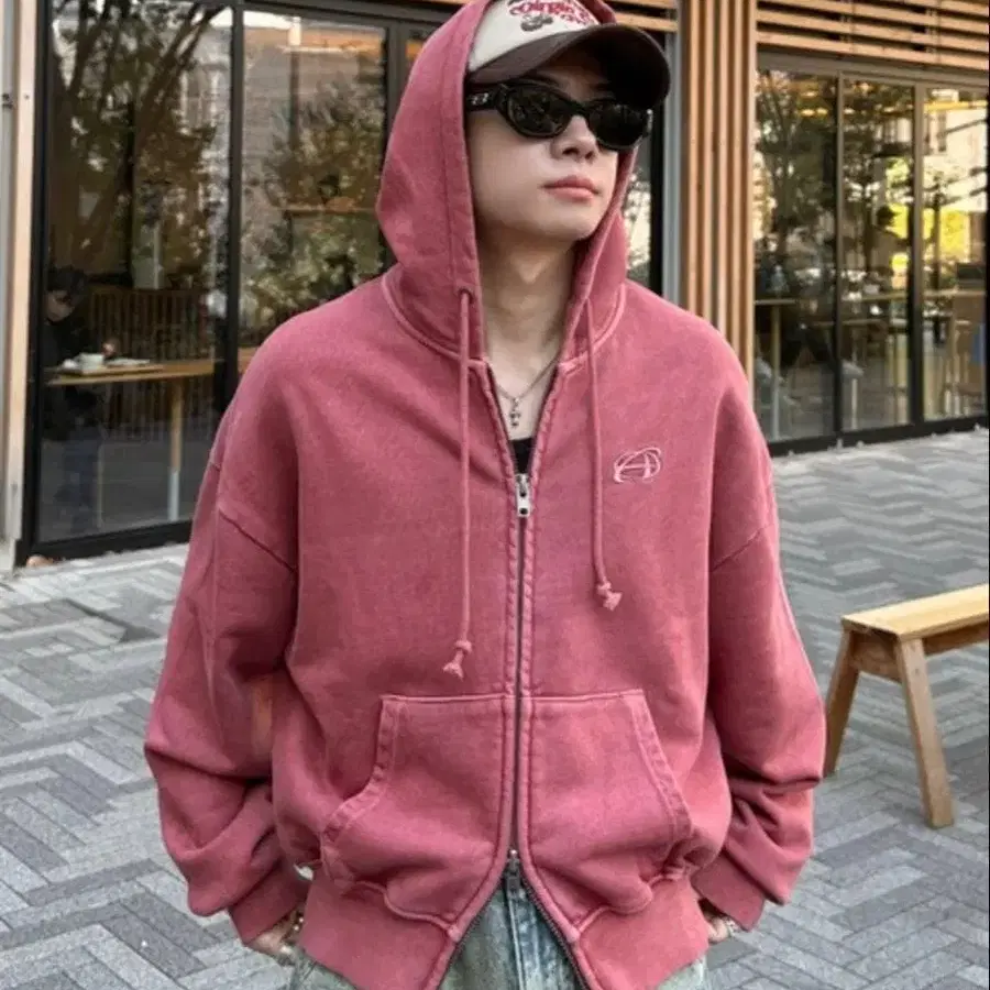 미사용 새상품 ADAMSTE 더블 지퍼 숏 후디 RED