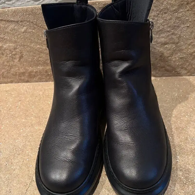 새상품급 23cm 크레센트 블랙 가죽 숏부츠 지퍼 포함