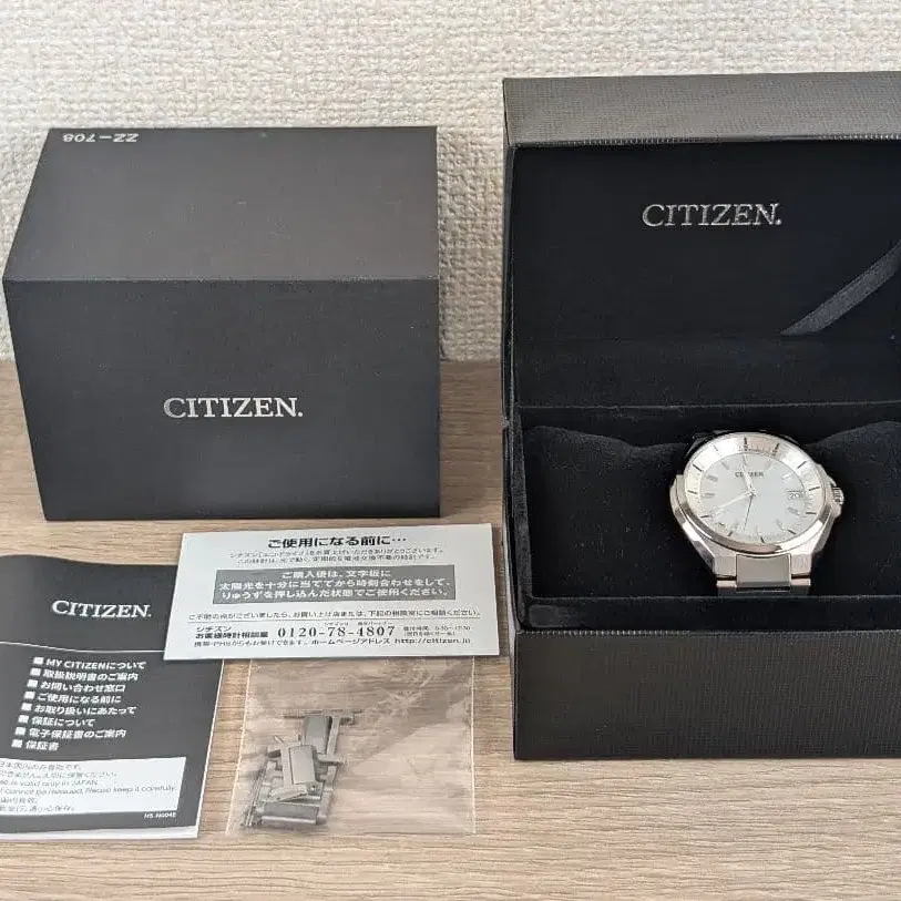 ◎ 상품 소개 CITIZEN ATTESA 아테사 Eco-Drive 실버 ◎ 상품 상태 작년 11월 amazon에서 구매 후 몇 번 사용했습니다. 몇 번 사용하지 않아 약간의 마찰은 있지만, 눈에 띄는 흠집/얼룩 없이 깔끔한 상태입니다. 작동하는 제품입니다. 문제없이 사용하실 수 있습니다. ◎ 제품 사양 제조사 CITIZEN(시티즌) 상품명 ATTESA 아테사 구동 방식 솔라 전파 모델 No. H128-R006860 CB3010-57A 다이얼 색상 실버 케이스 사이즈 가로 11.5cm 세로 8.5cm 두께 8.5mm 팔 둘레 약 17cm ◎ 부속품 사진에 보이는 것이 전부입니다. [ 주의 사항 ] 상태 확인은 개인에 따라 감각이 다르므로, 걱정되시는 분이나 예민하신 분, 완벽한 제품을 원하시는 분은 신중하게 검토해 주십시오. '중고품'이라는 점을 이해하시는 분만 구매 부탁드립니다. 거래 평가 후에는 반품 처리가 어렵습니다. 상품에 결함이 있을 경우 거래 평가 전에 연락 부탁드립니다. #시티즌