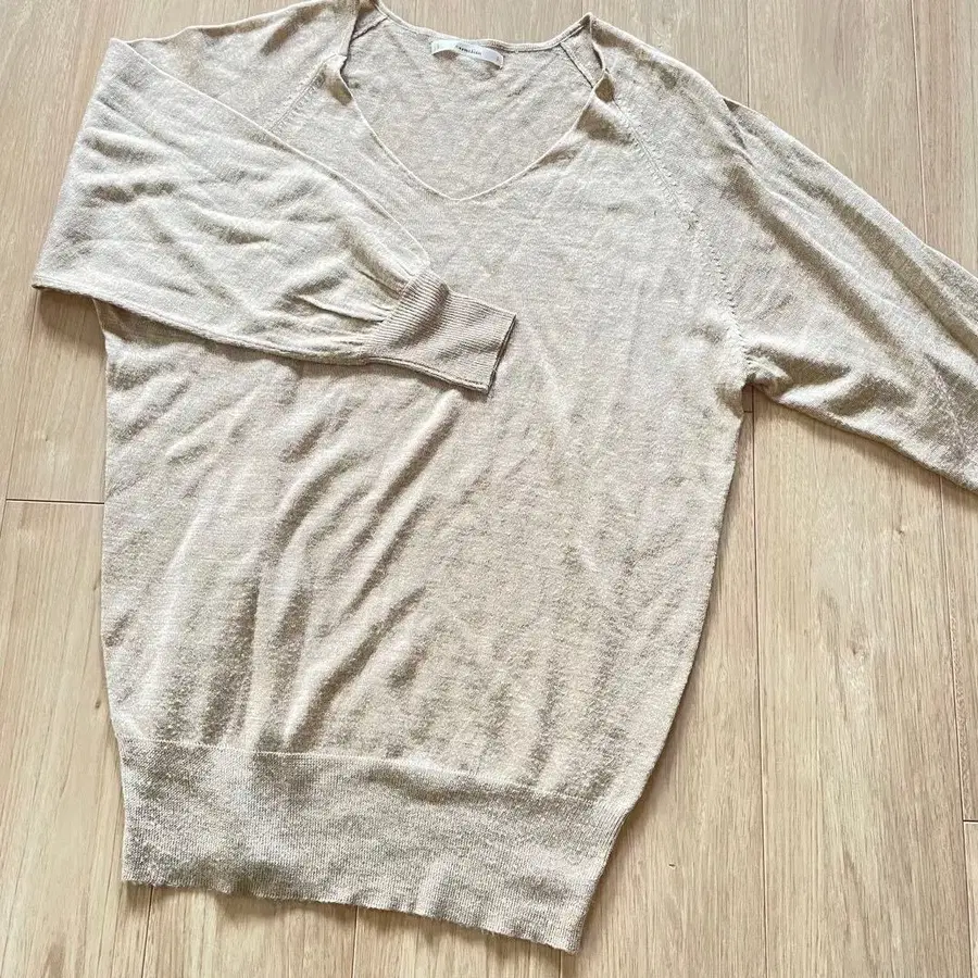 carnelian 베이지 오버 사이즈 V넥 니트 긴팔