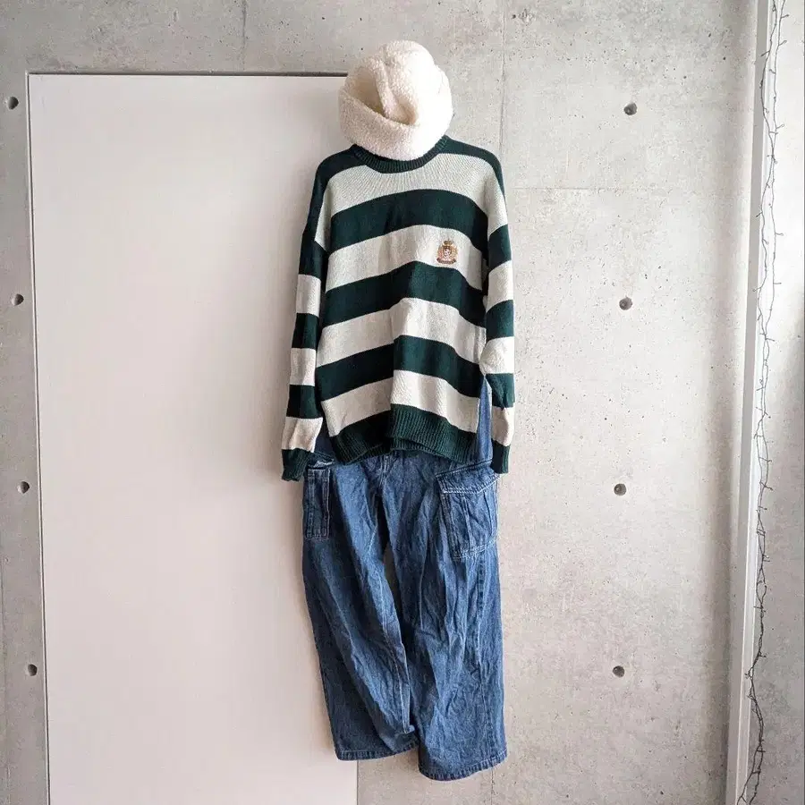 [코디 판매] 캐주얼 코디 3종 세트 구제 니트 카고 팬츠 보아캡