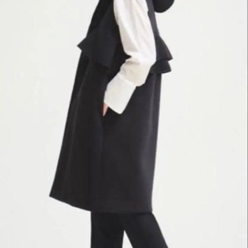 Yori 요리 본딩 롱 조끼 롱 베스트 블랙 백 프릴 코트