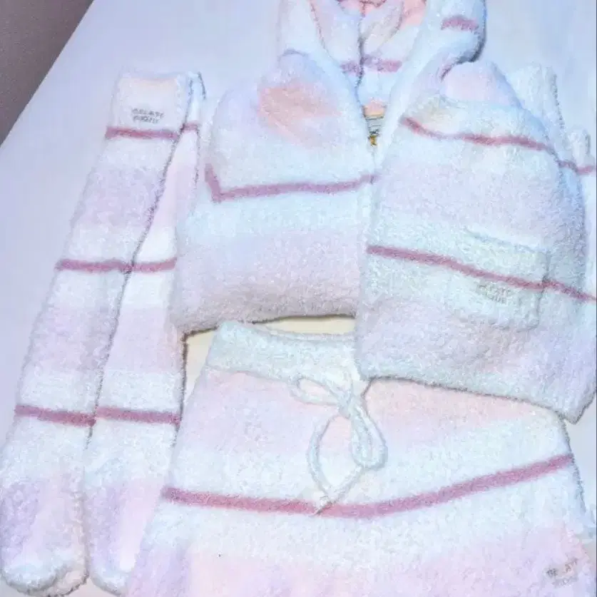 젤라또피케의 복슬복슬 후드 부착 룸웨어 세트입니다