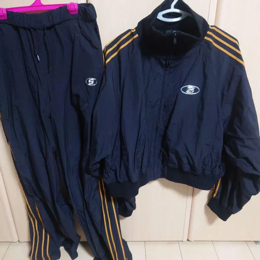 WHO'WHO 갤러리 셋업 블랙 x 오렌지 스트라이프