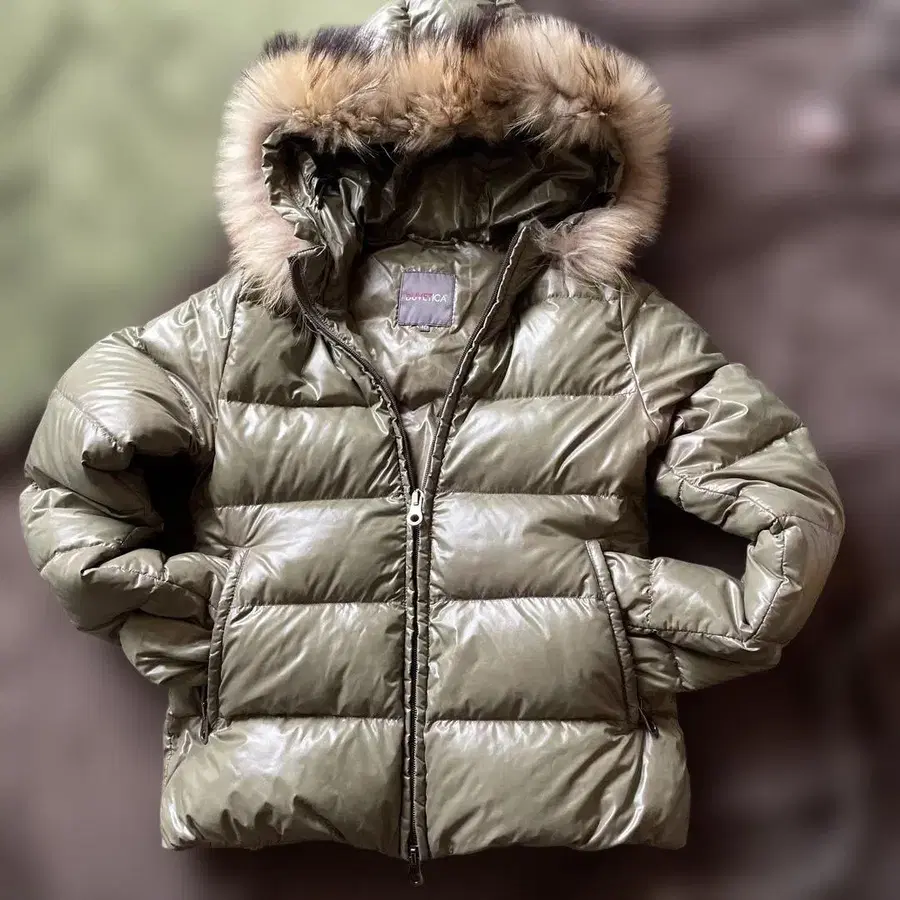 DUVETICA 올리브 그린 다운 자켓 퍼 포함 40