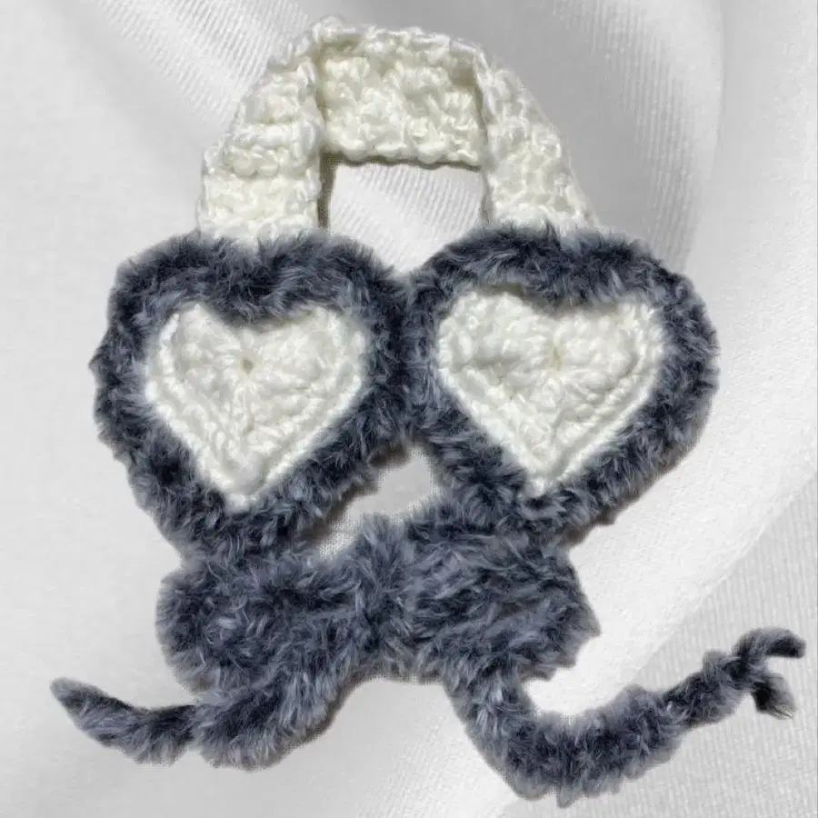 핸드메이드 하트형 퍼 귀도리 니트 크로 셰 뜨개질 털실