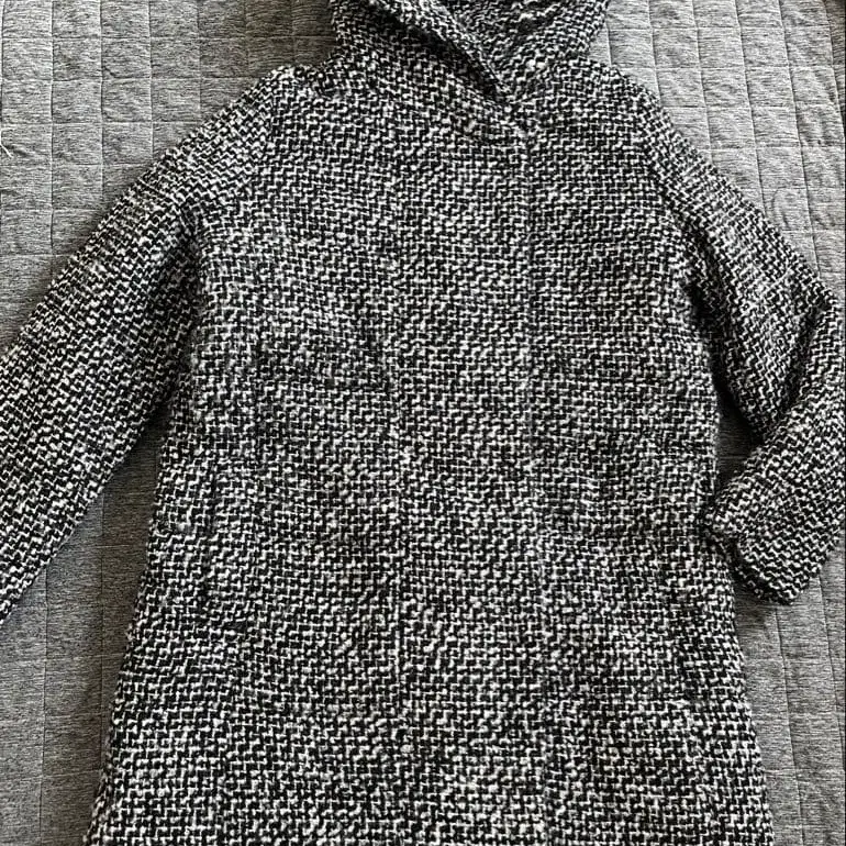 GU 후드 부착 트위드 롱 코트