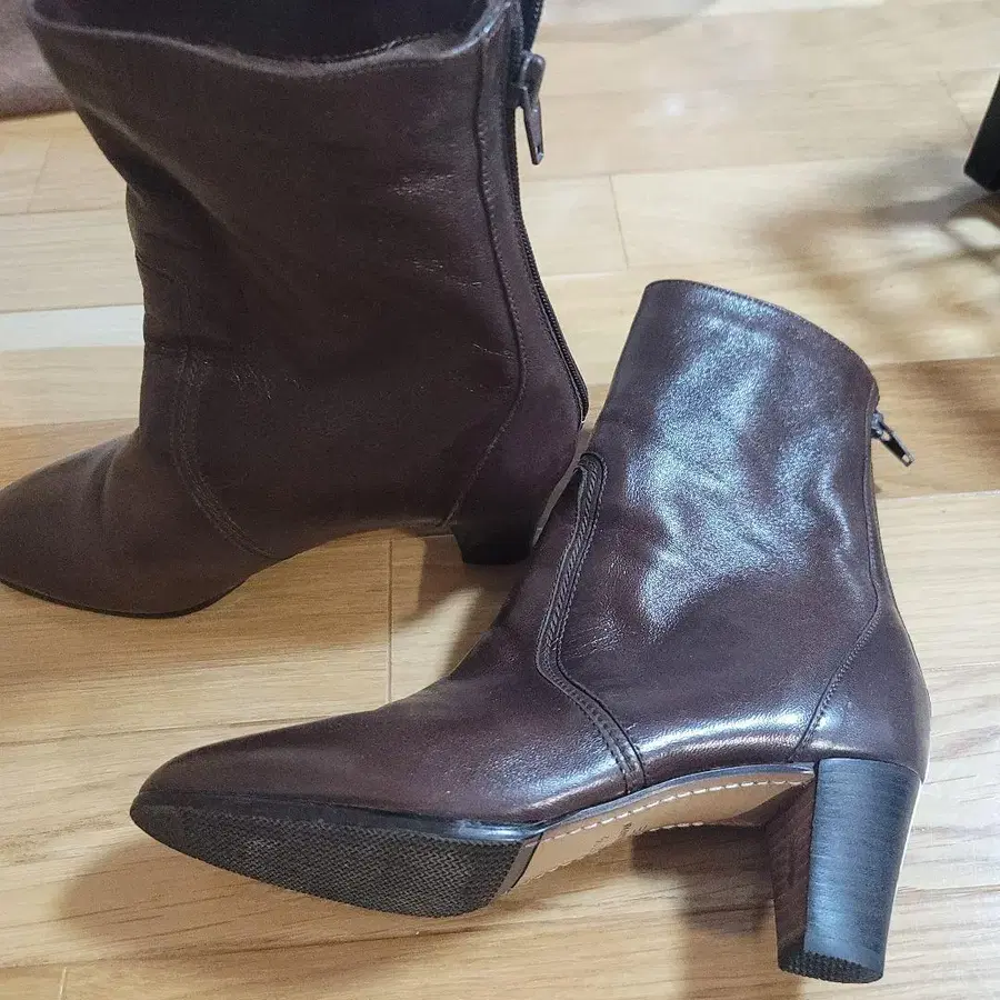 다크 브라운 가죽 부츠 23.5cm EE