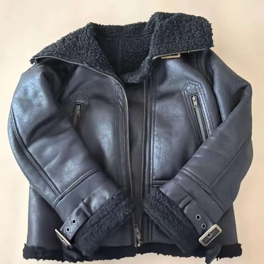 블랙 가죽 라이더 자켓