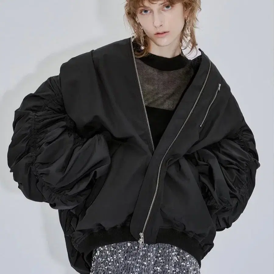 볼륨 슬리브 오버 사이즈 자켓 블랙