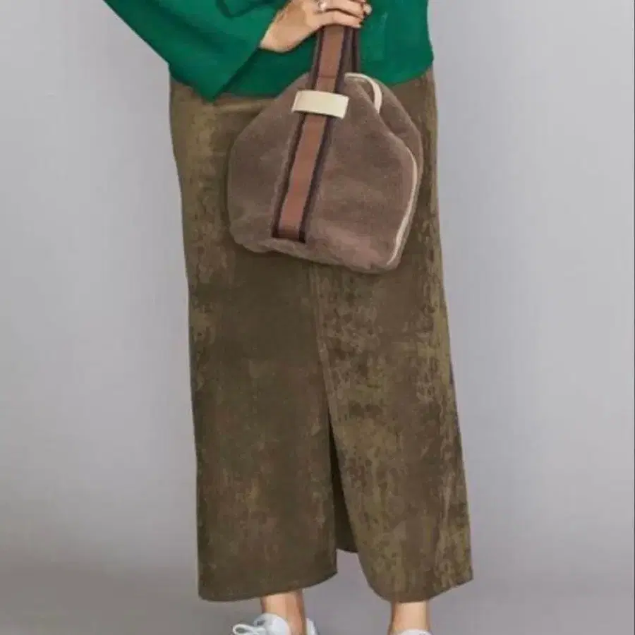 [ 새상품 ] 유나이티드 애로우즈 타이트 스커트 벨로아 롱 스커트 그린