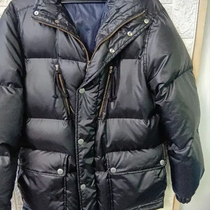 자동 번역되었어요. 원문보기조정 가능한 밴딩 소매와 프론트 지퍼가 달린 심플한 블랙 다운 자켓.