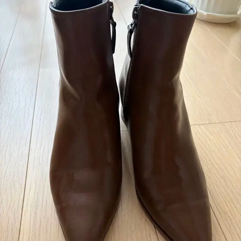 브라운 스틸레토 부츠 중간 굽