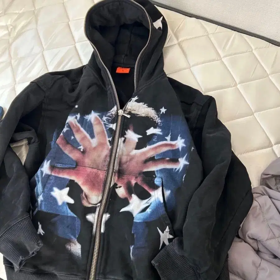 블랙 후드티 Flex 후드티 별과 손 디자인