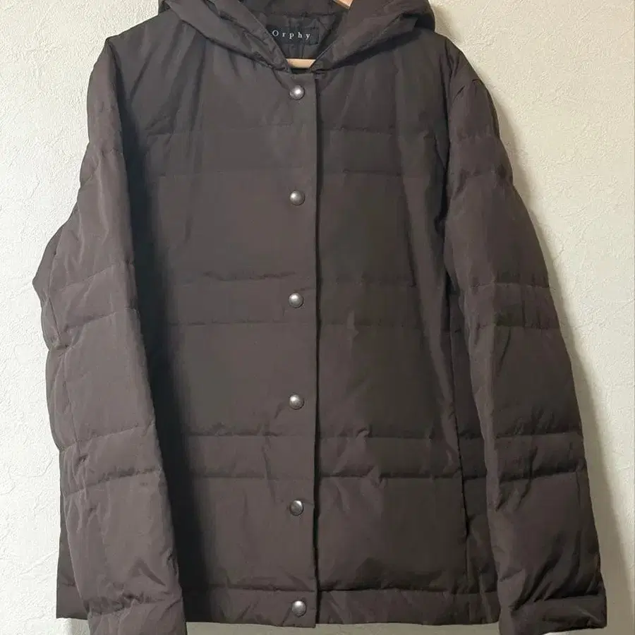 후드 부착 다크 브라운 다운 자켓