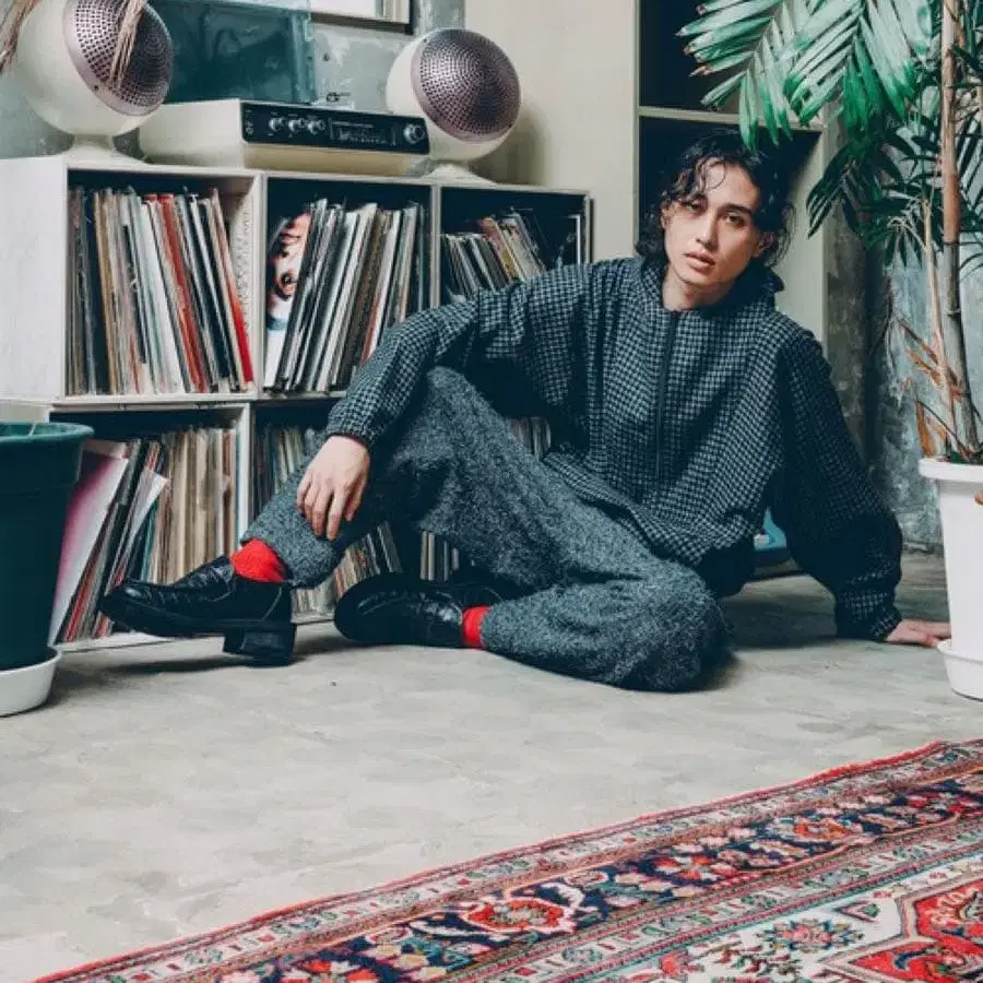 체크 무늬 후드 부착 자켓 지에다