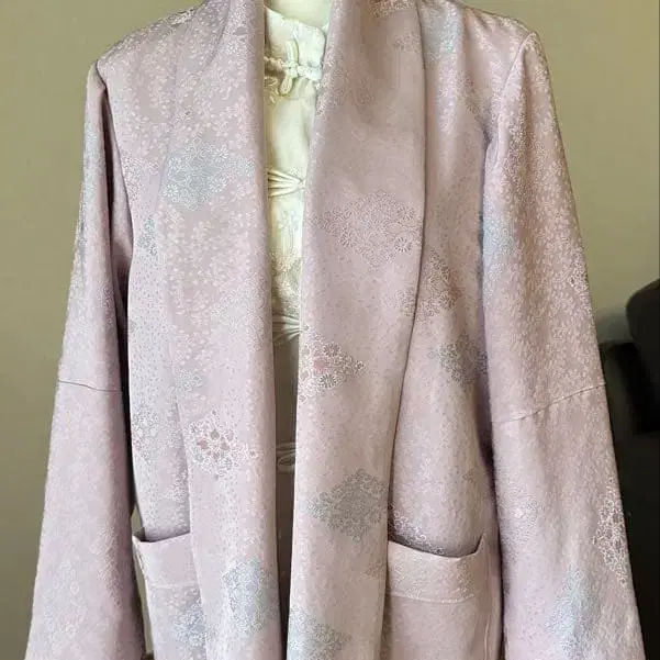 연보라 꽃무늬 자수 순수 실크 하오리 리메이크 하오리 자켓 여성용