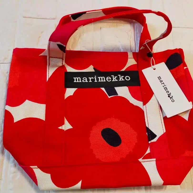 [ 새상품 미사용 ] 마리메꼬 우니코 패턴 미니 토트백 레드 꽃무늬