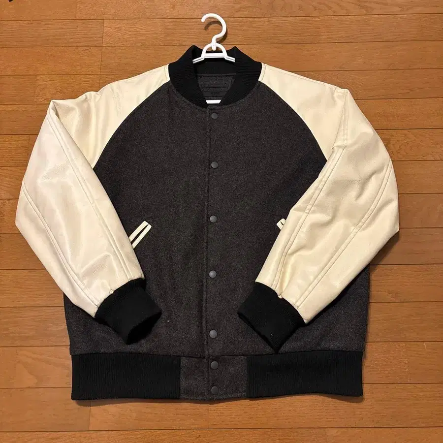 바시티 자켓 블랙과 아이보리 콤비네이션