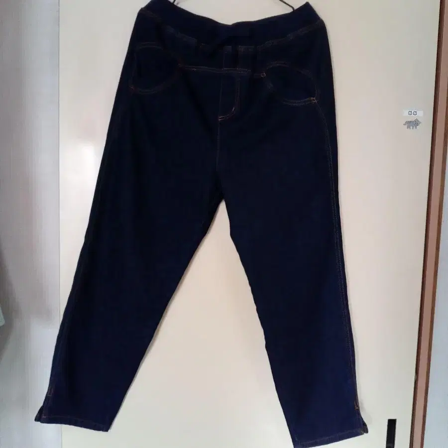 속기모 다크 네이비 데님 팬츠, 허리밴딩, 조정 끈 있음