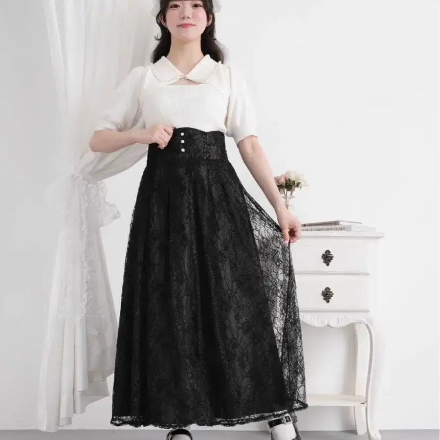 DearMyLoveRose 백리본 하이웨스트 플레어 스커트