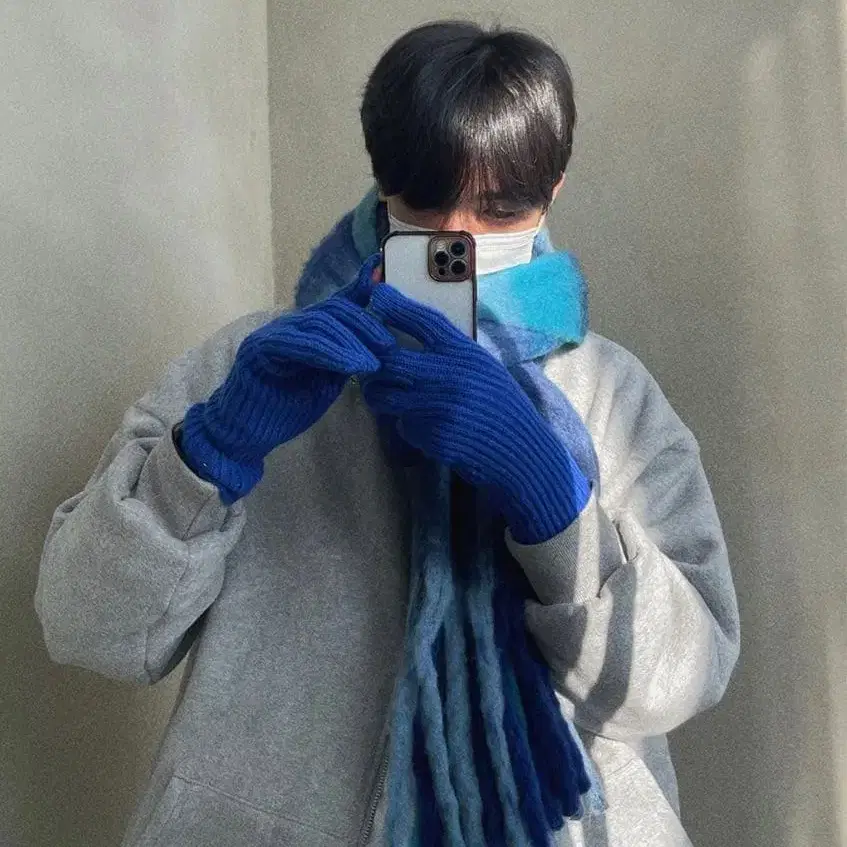 ASCLO 그라데이션 모헤어 라이크 머플러 한국 블루 프린지