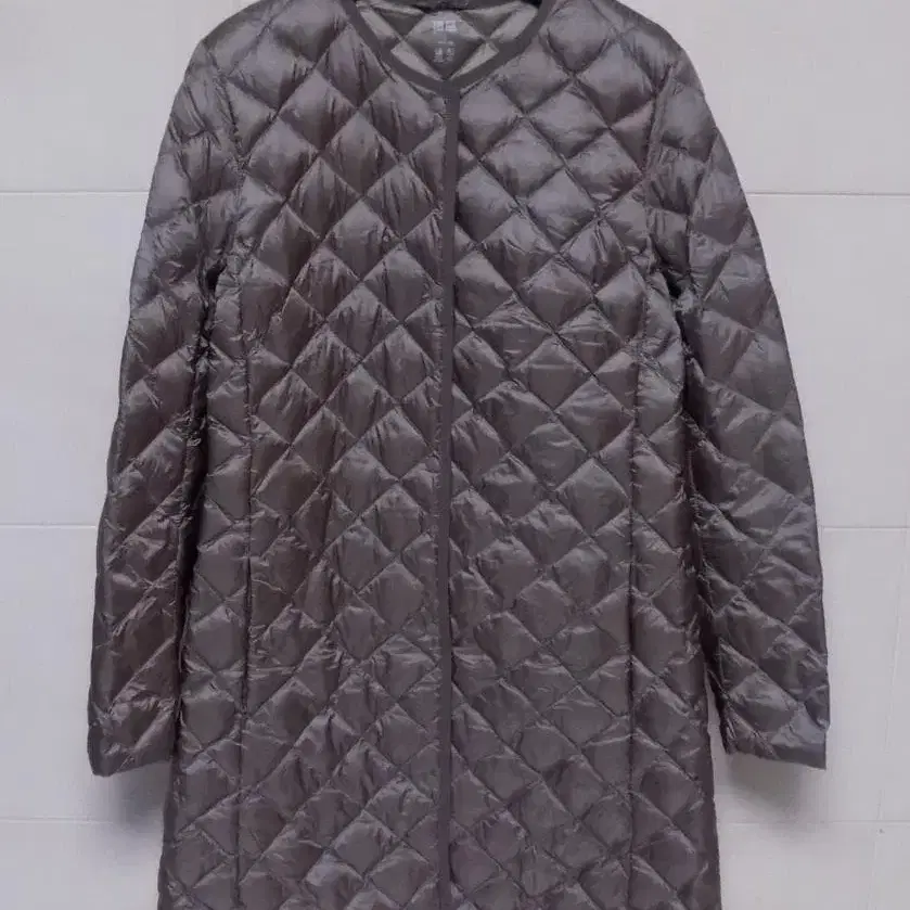 새상품급 유니클로 노카라 퀼팅 모카 브라운 울트라 라이트 다운 코트 L