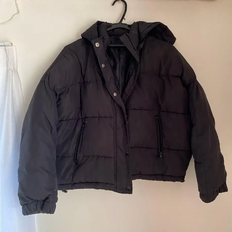 WEGO 후드 부착 블랙 숏 다운 자켓 F 사이즈