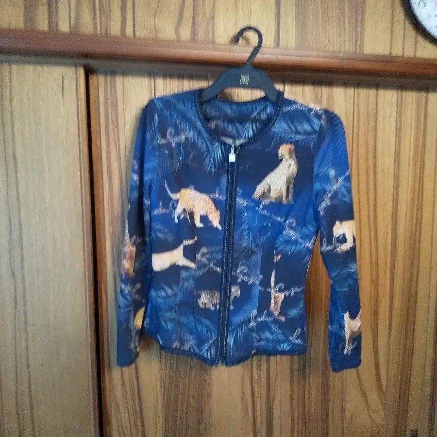 이타리야 동물 패턴 집업 긴팔 상의 네이비