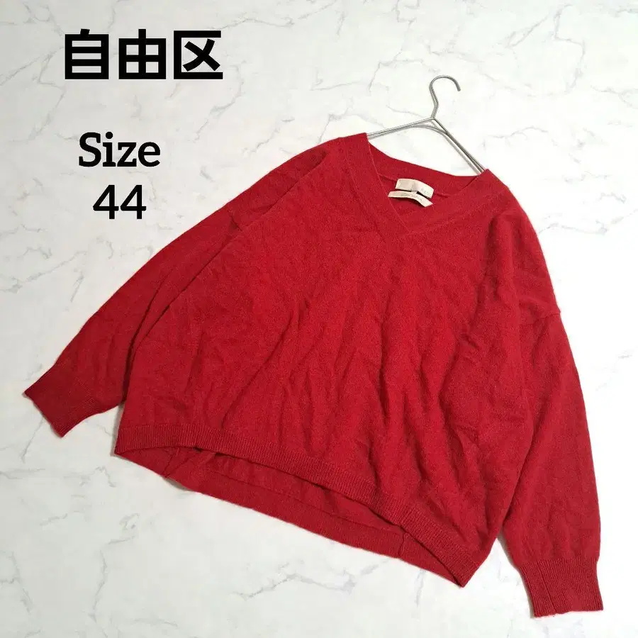 자유구 캐시미어 100% V넥 긴팔 니트 풀오버 빨간색 44