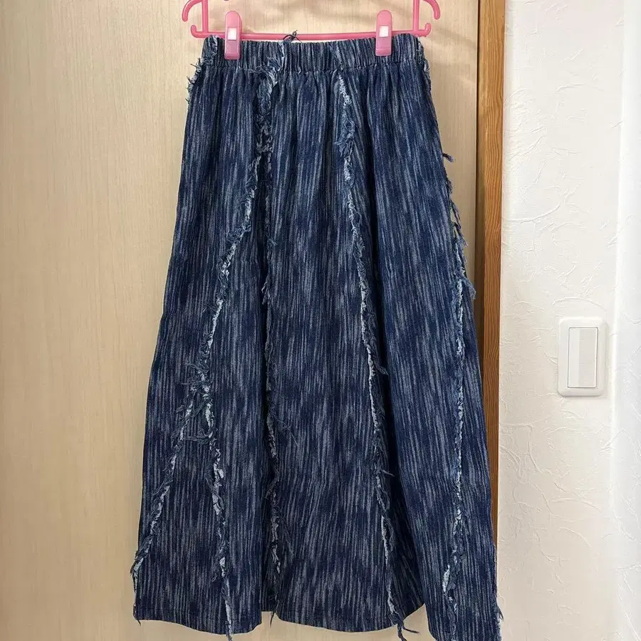 rccat 프린지 가공 다크 블루 롱 스커트