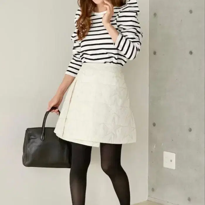 [ 미사용 새상품 ] OBLI 퀼팅 스타 자수 스커트