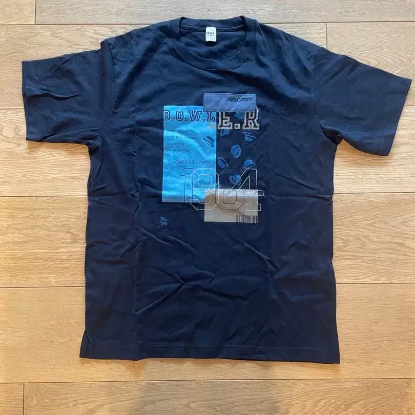 다케오 키쿠치 그래픽 디자인 네이비 T셔츠