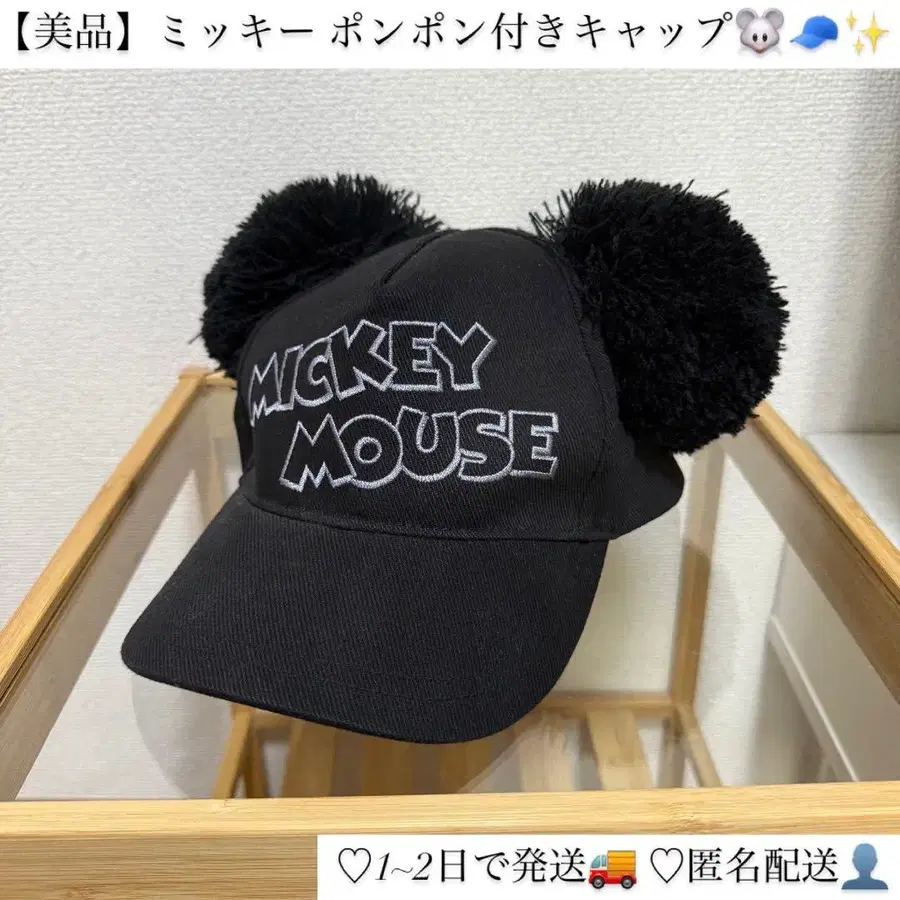 [새상품급] 미키마우스 폼폼 포함 캡 블랙 디즈니 모자 귀여움