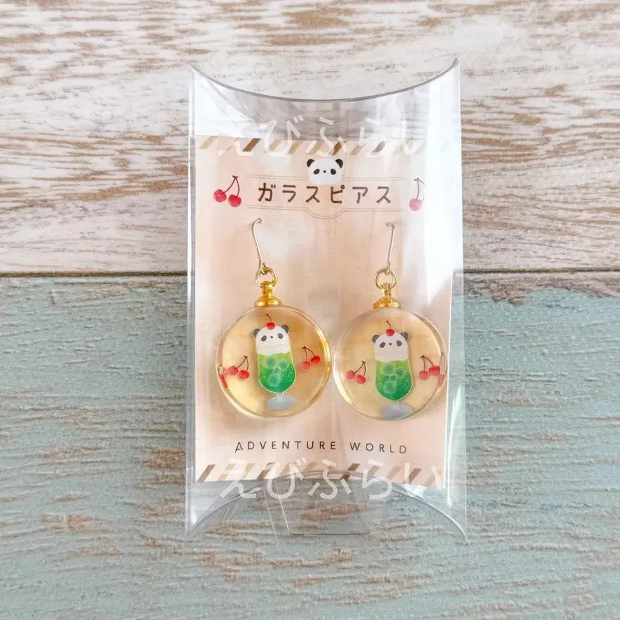 새상품 어드벤처 월드 팬더 유리 귀걸이