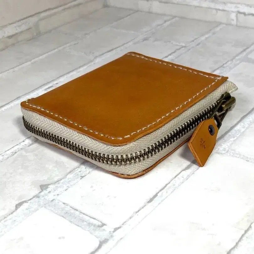 [ 도치기 가죽 ] 본격 소가죽 컴팩트 지갑 L자 지퍼 지갑 카멜