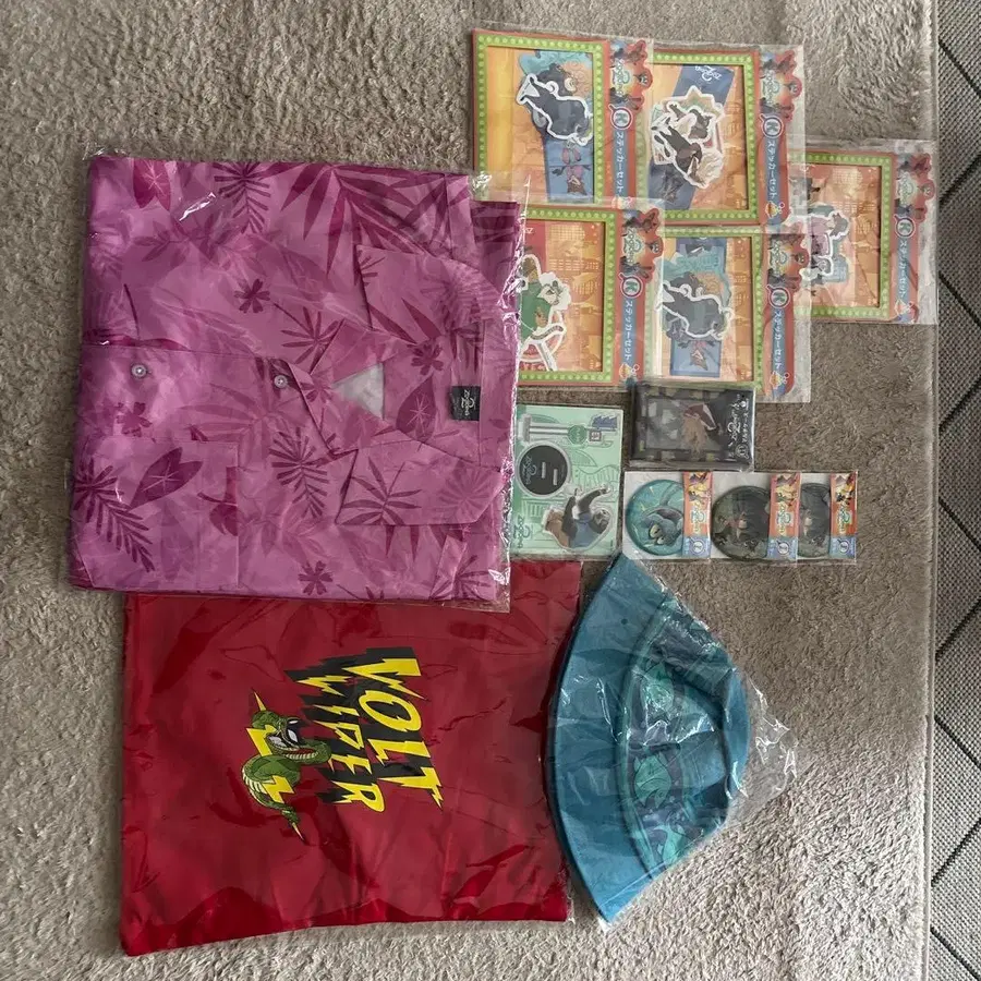 핑크 잎 패턴 반팔 셔츠, 캡, 토트백 세트
