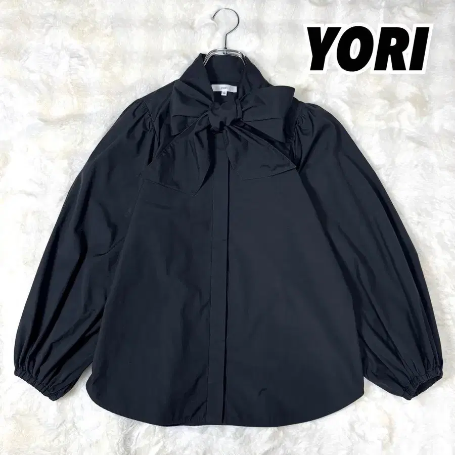 yori 빅 리본 퍼프 슬리브 블라우스 블랙