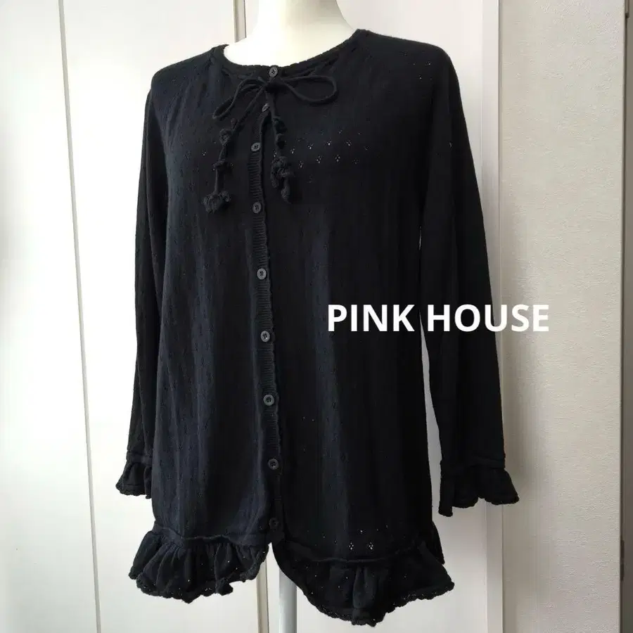 컨디션 최상 핑크하우스 가디건 긴팔 리본 프릴 티셔츠 상의