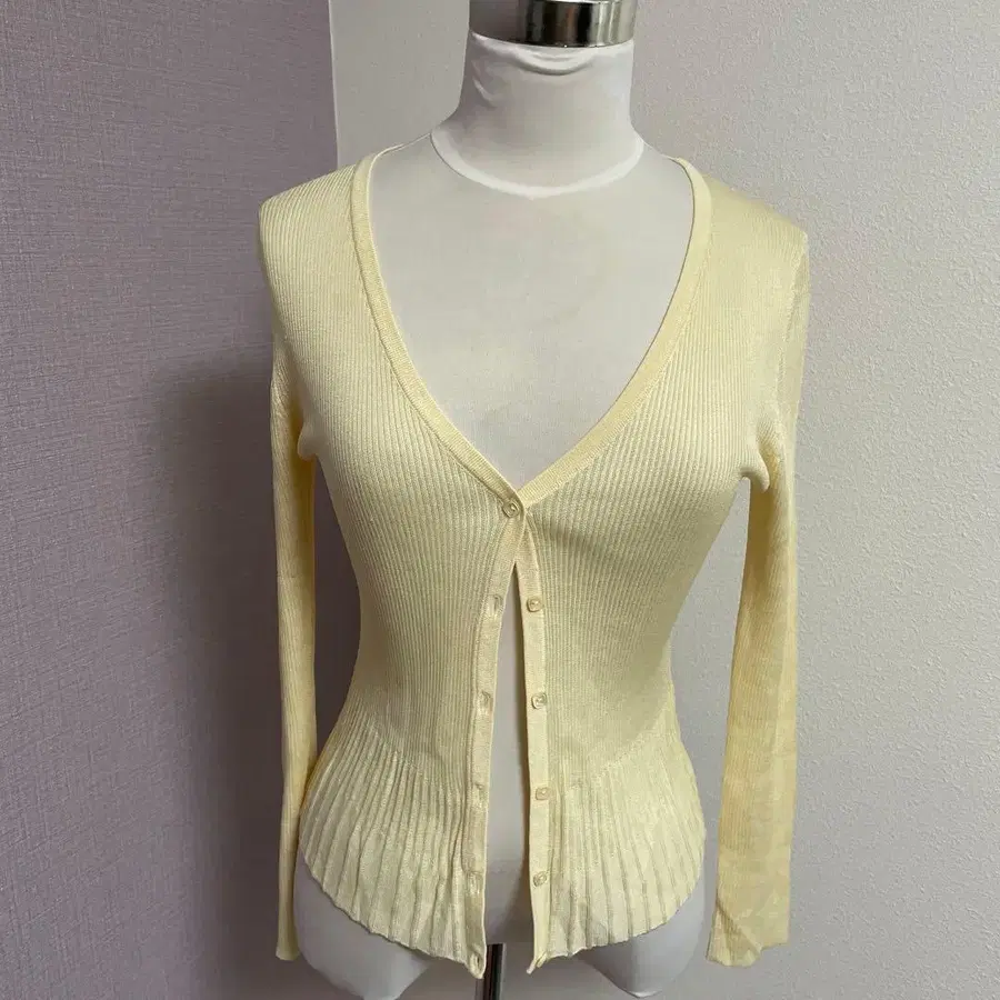 토카 리브 V넥 가디건 연한 옐로우 컬러