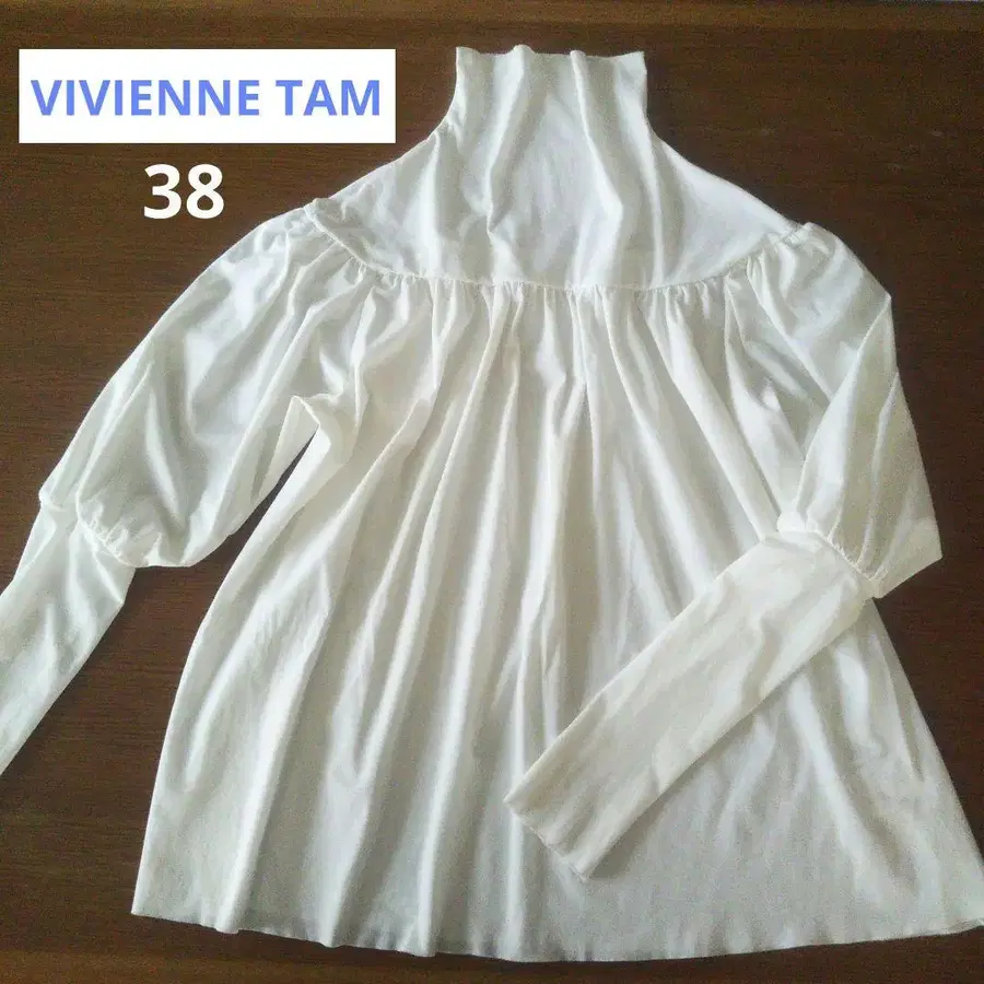 비비안 탐 화이트 하이넥 오프숄더 퍼프 슬리브 귀여운