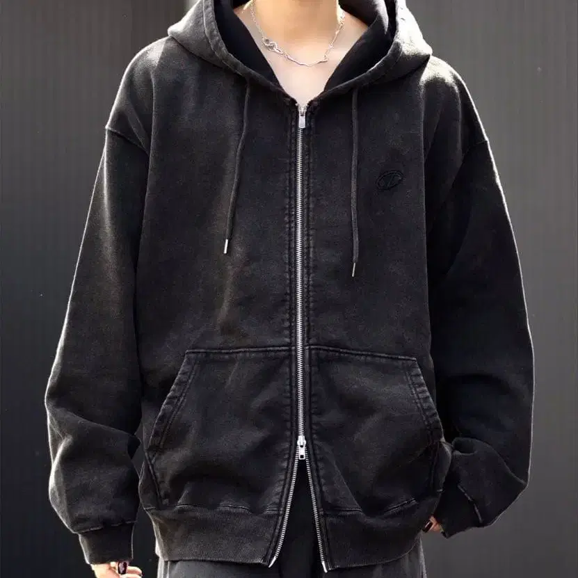 [ CLEL ] 헤비 웨이트 로고 자수 풀 집업 후드티 XS 블랙 계열